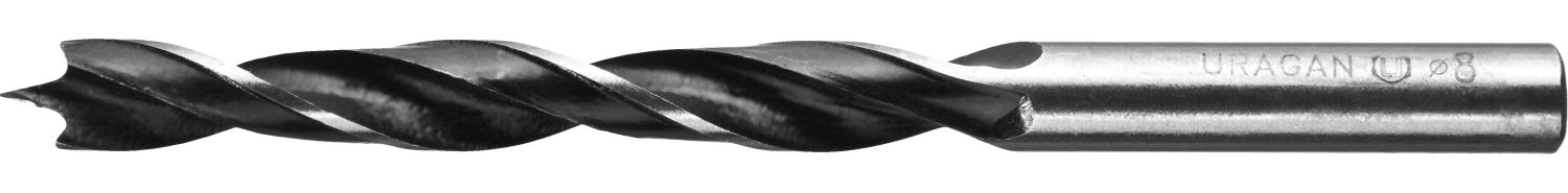 Спиральное сверло по дереву URAGAN предназначено для сверления глухих и сквозных отверстий в древесине, фанере, ДСП, клееных щитах и пластмассе