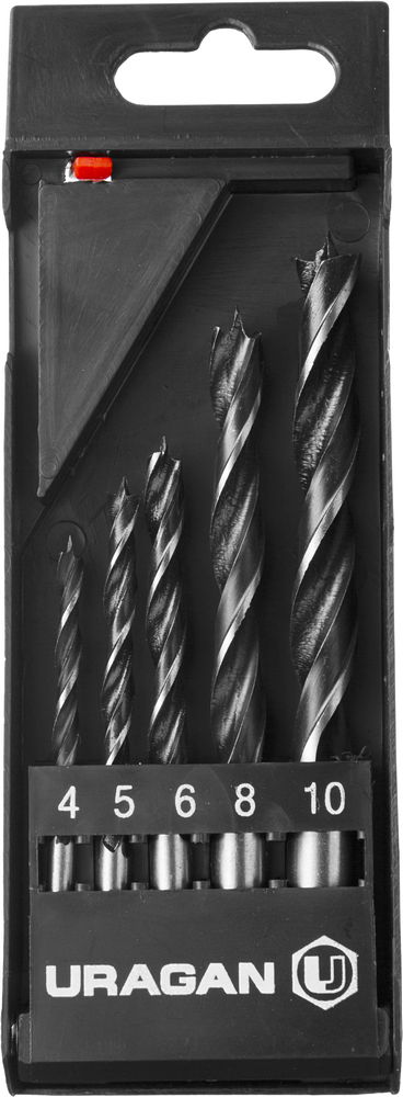 URAGAN 5 шт., 4-5-6-8-10 мм, набор спиральных сверл по дереву