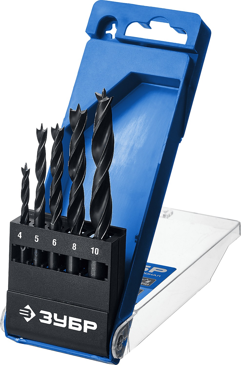 ЗУБР 5 шт(4-5-6-8-10 мм), набор спиральных сверл по дереву, М-образная заточка