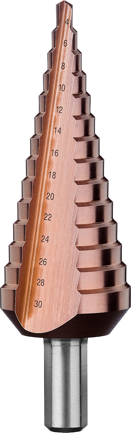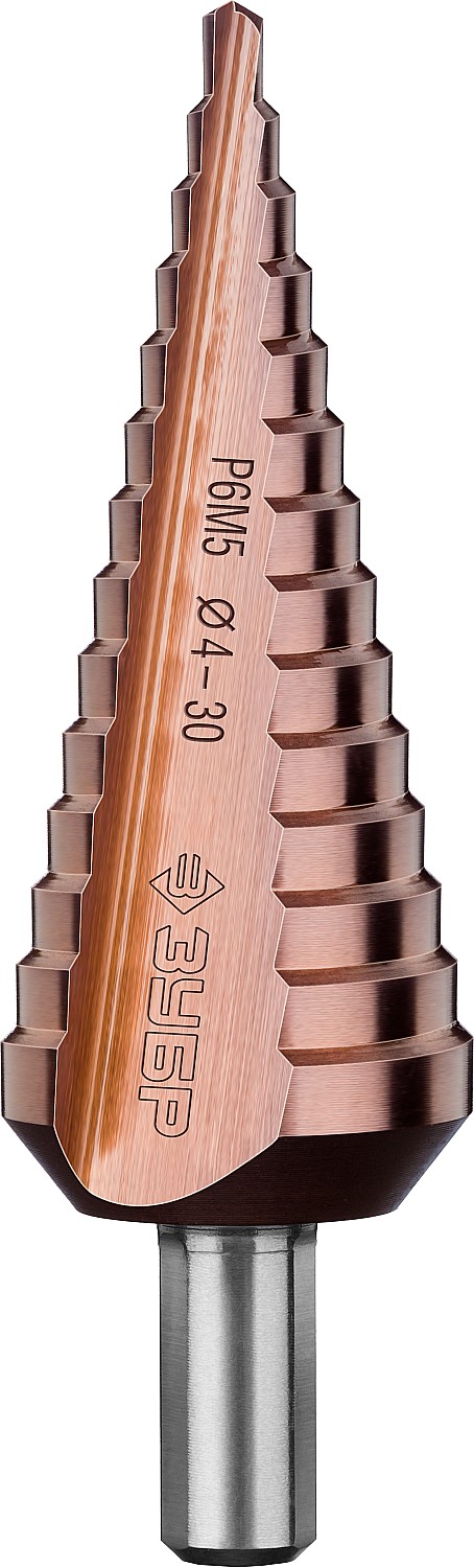 Сверло ступенчатое, 4-30мм, 14 ступеней, кобальтовое покрытие, ЗУБР КОБАЛЬТ, серия Профессионал