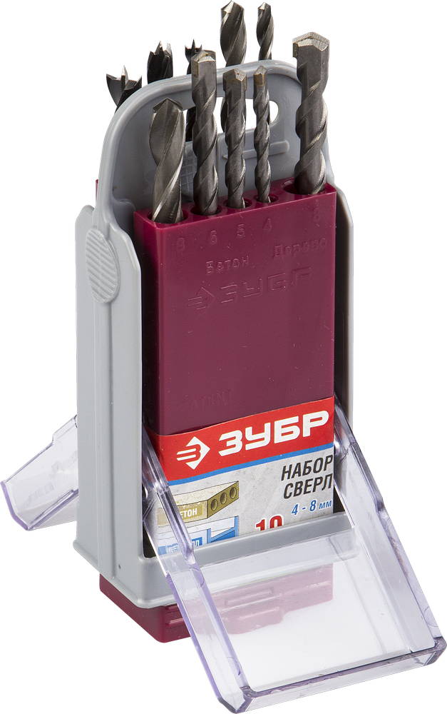 ЗУБР 10 шт., в супер боксе, набор сверл комбинированный