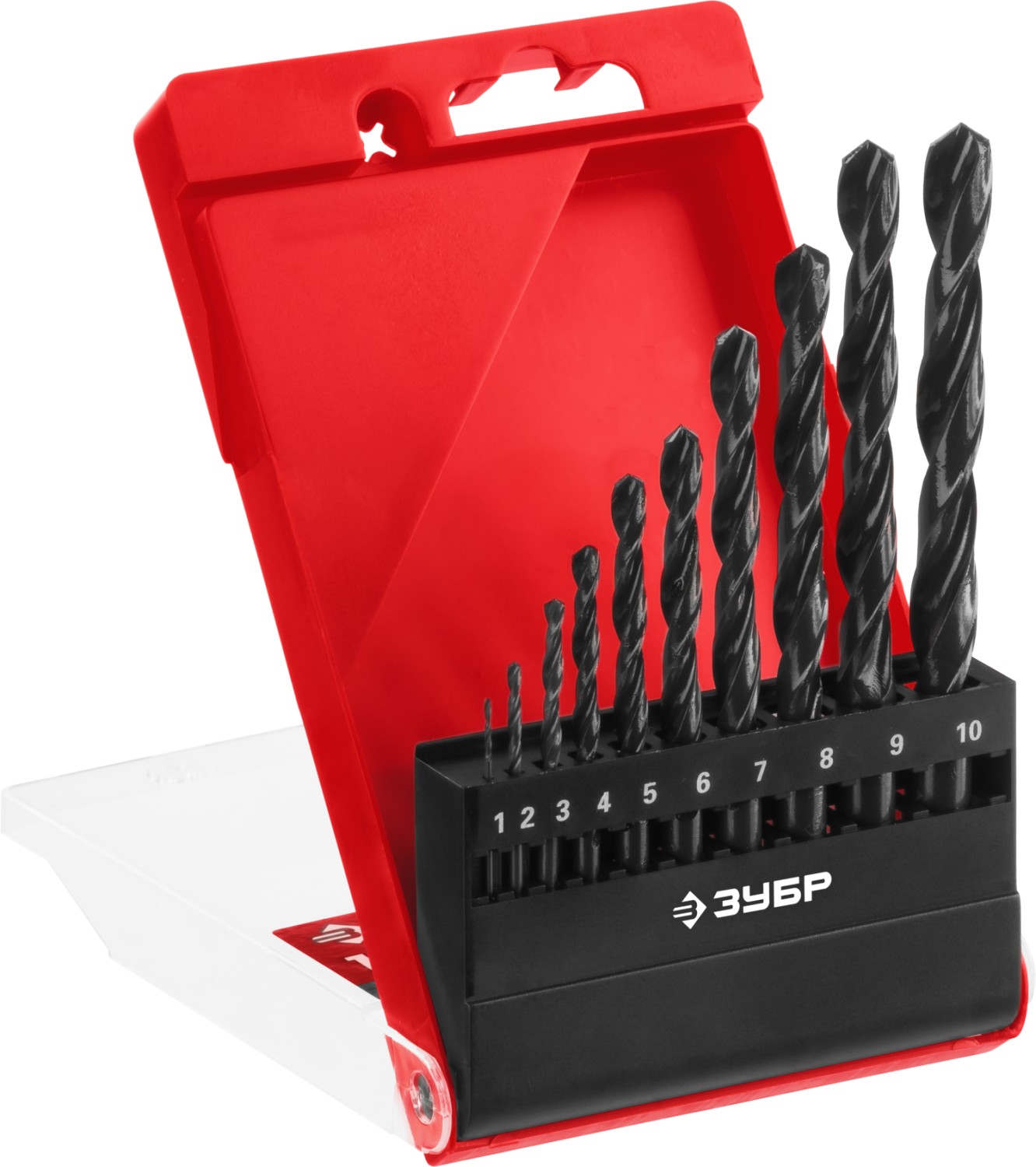 ЗУБР МАСТЕР 10шт(1-10мм), Набор сверл по металлу, сталь Р4М2, класс В