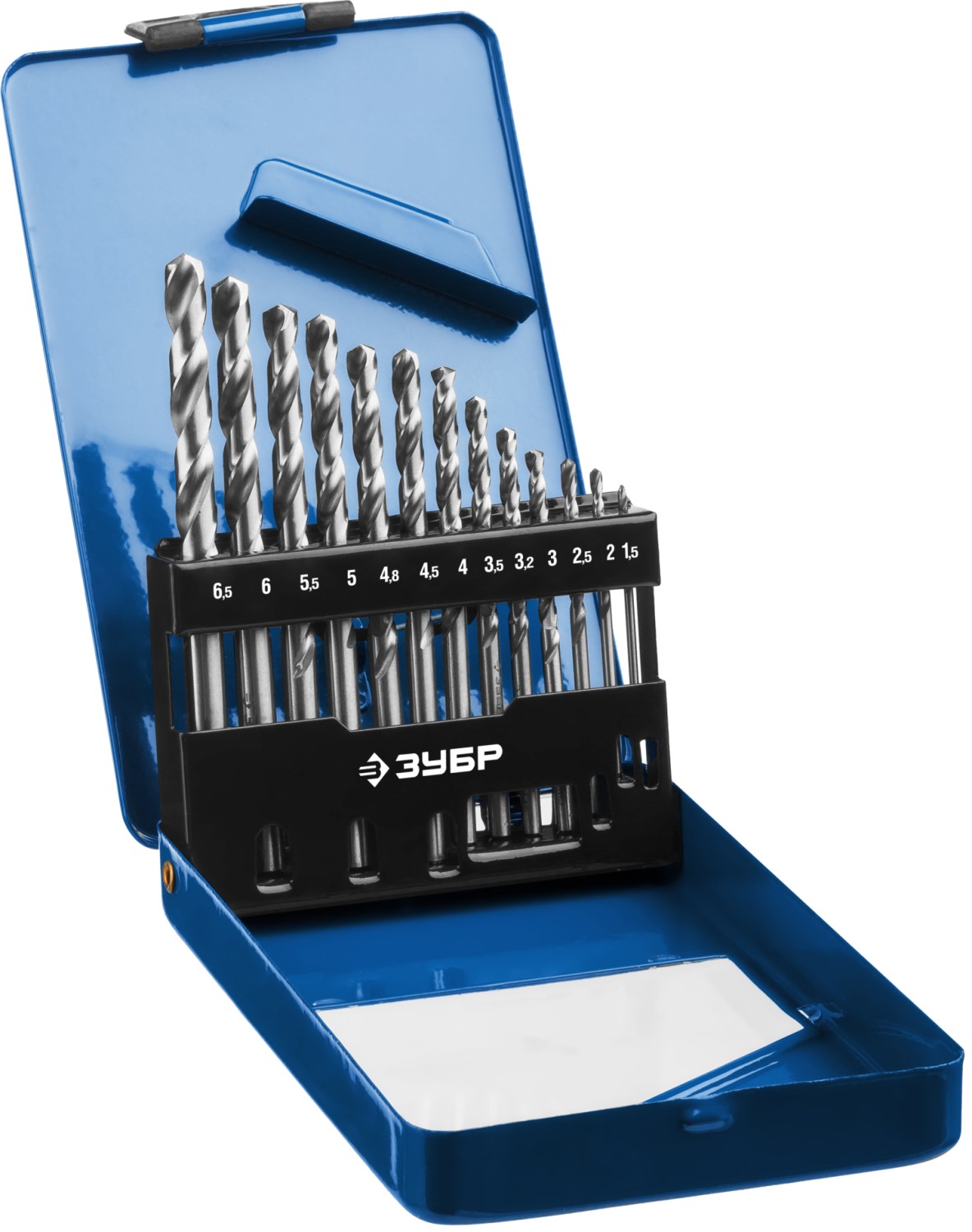 ЗУБР ПРОФ-А 13шт(1.5-6.5мм), Набор сверл по металлу, сталь Р6М5, класс А, мет.бокс