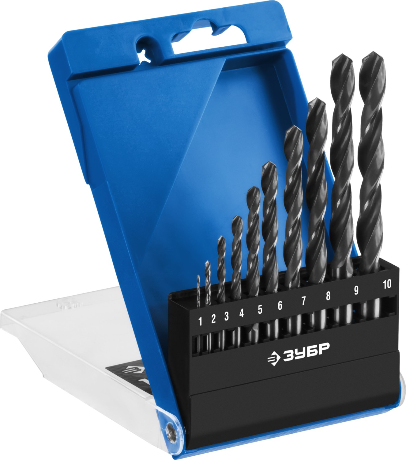 ЗУБР ПРОФ-В 10шт(1-10мм), Набор сверл по металлу, сталь Р6М5, класс В