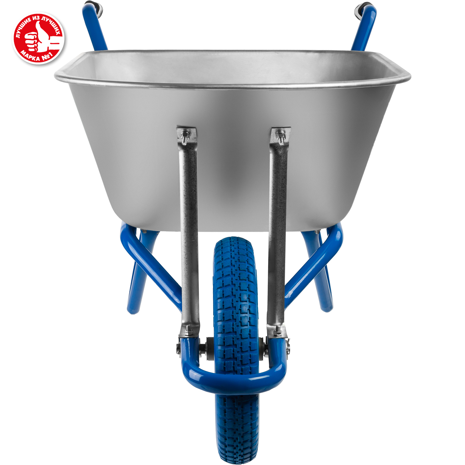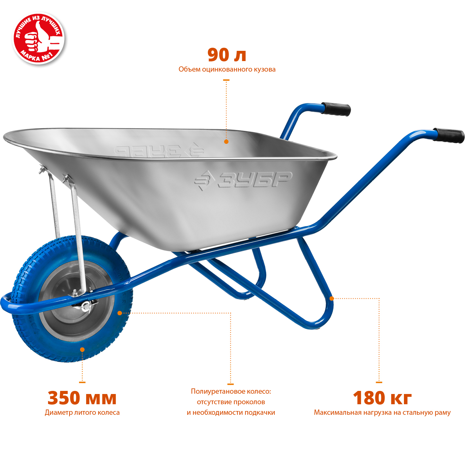 Отличается прочной конструкцией, большой грузоподъемностью, хорошей маневренностью и долговечностью. Модель оснашена стальными подшипниками. Применяется для транспортирования различных грузов во время проведения строительных и садовых работ.