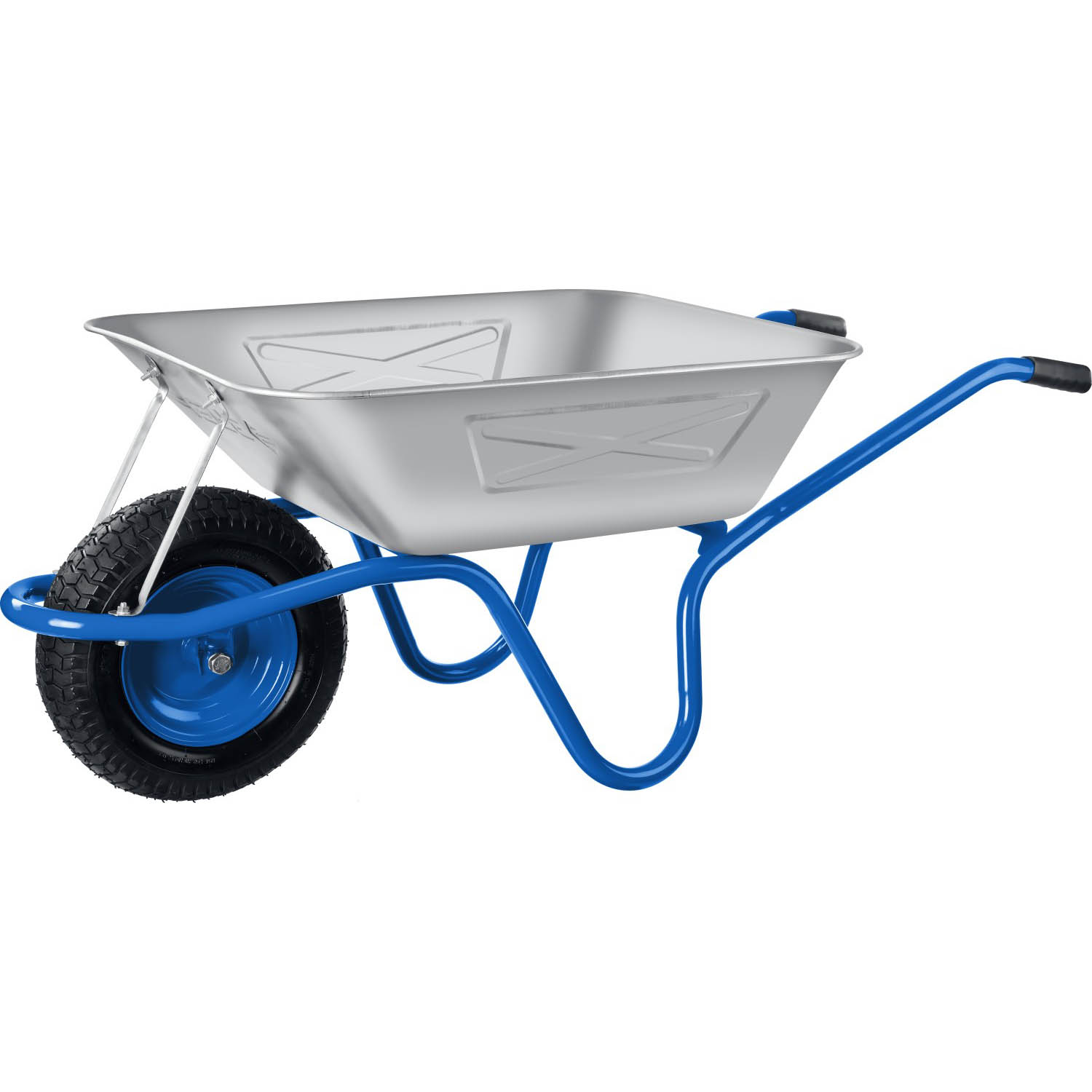 • -Стальной кузов толщиной 0,9мм и объемом 130л для сыпучих грузов имеет цинковое покрытие, обеспечивающее защиту тачки от внешних воздействий.,