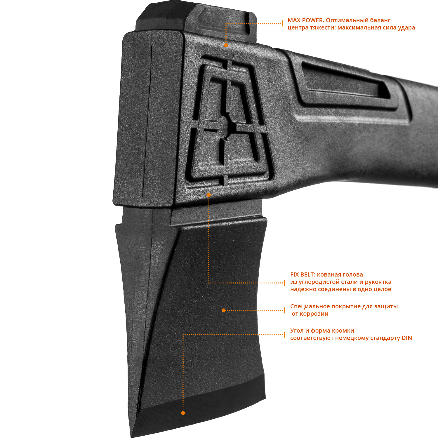 • FixBelt - надёжная фиксация головы топора путем внешней кольцевой обливки