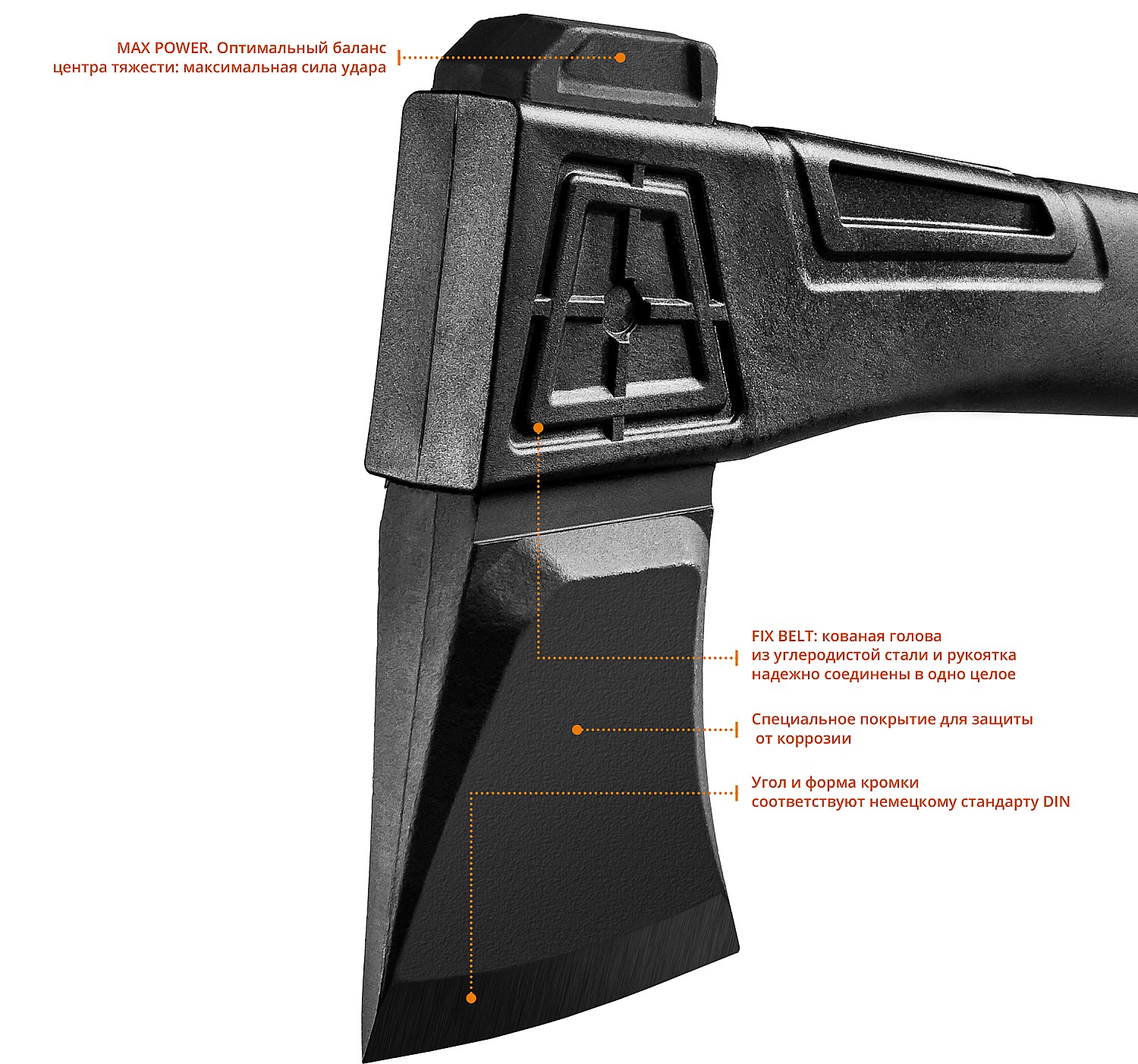 • FixBelt - надёжная фиксация головы топора путем внешней кольцевой обливки
