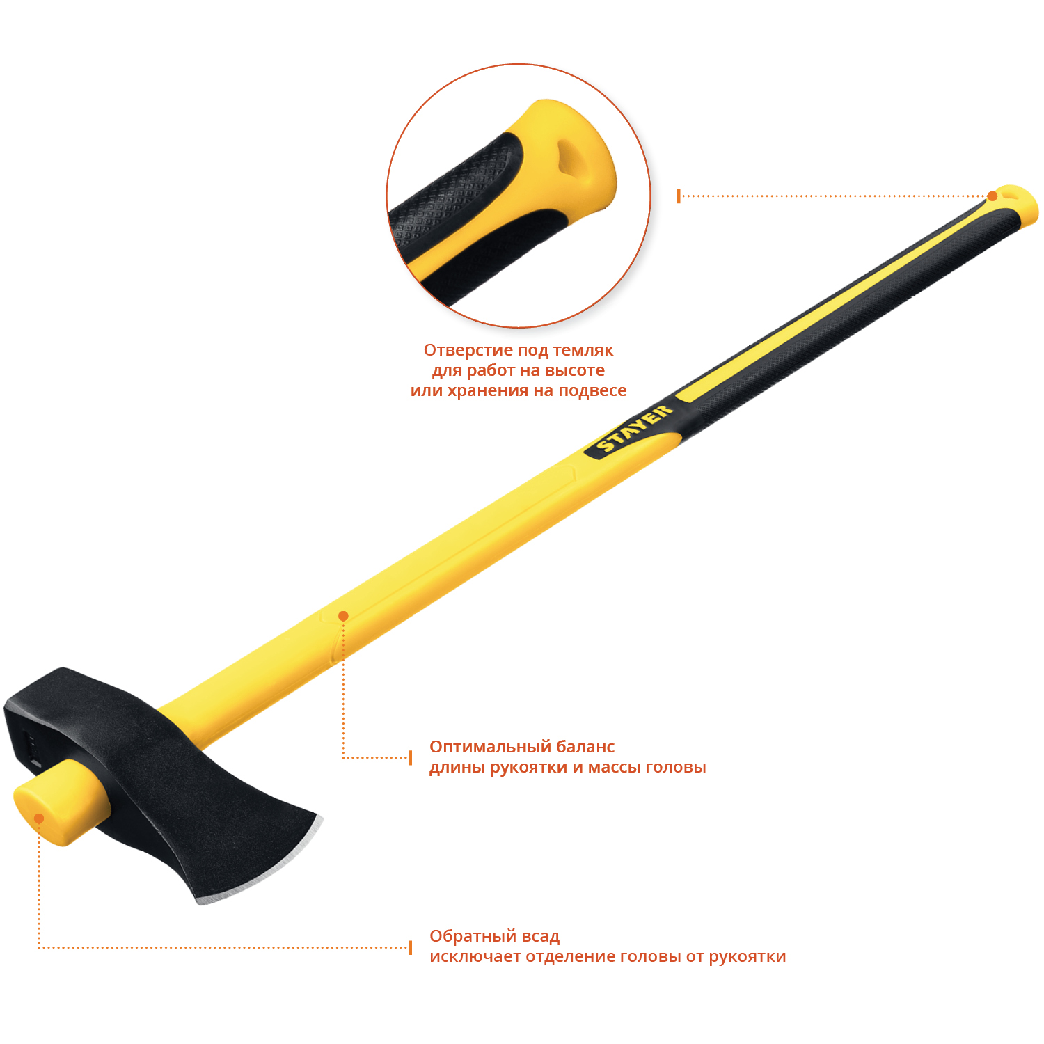 • Оптимальный баланс длины рукоятки и массы головы