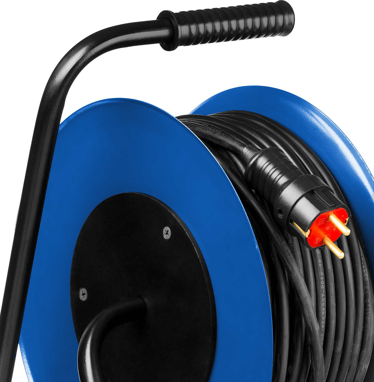 - Катушка позволяет легко сматывать и разматывать кабель, обеспечивая мобильное перемещение и компактное хранение.