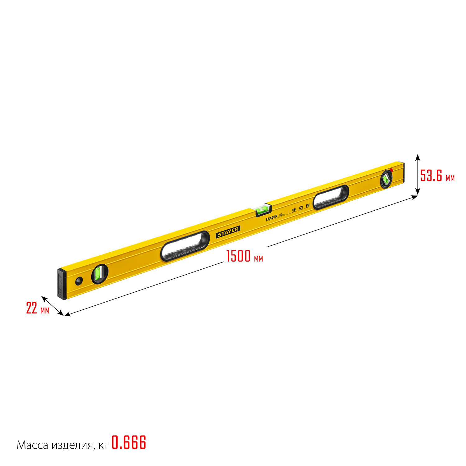 STAYER Leader 1500 мм, Строительный фрезерованный уровень (3466-150)