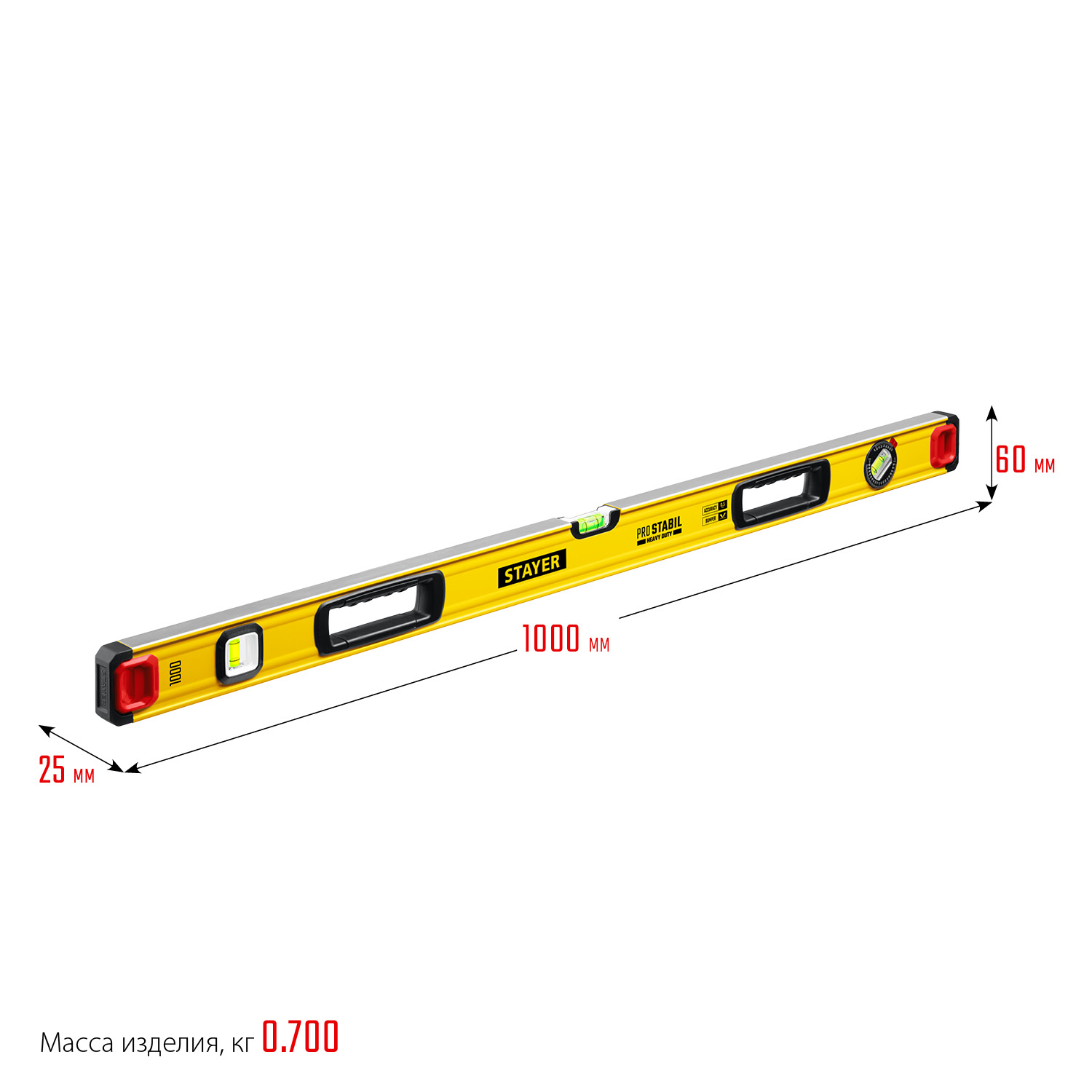 STAYER ProStabil 1000 мм, Строительный фрезерованный уровень (3471-100)