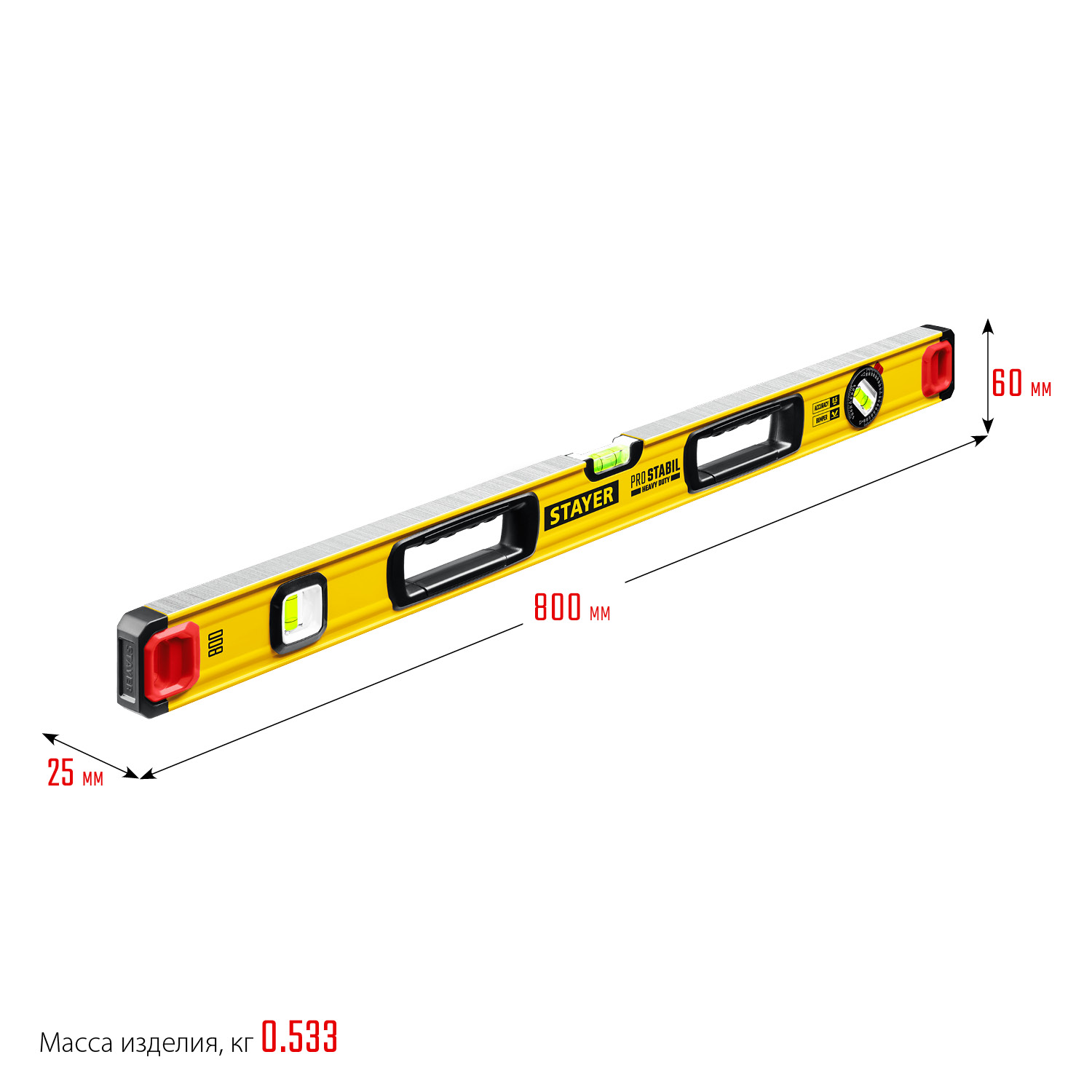 Строительный уровень с двумя фрезерованными поверхностями и увеличенной точностью 0.5 мм/м