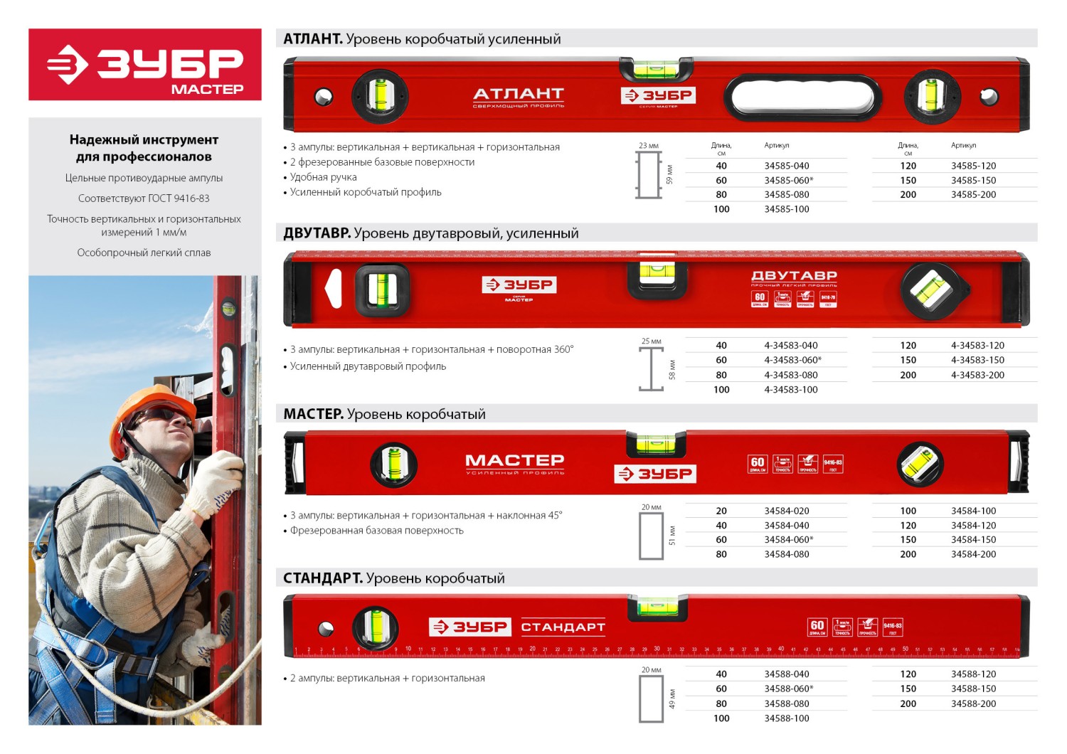 Уровень ЗУБР ″СТАНДАРТ″ коробчатый, 2 противоударные ампулы, 80см