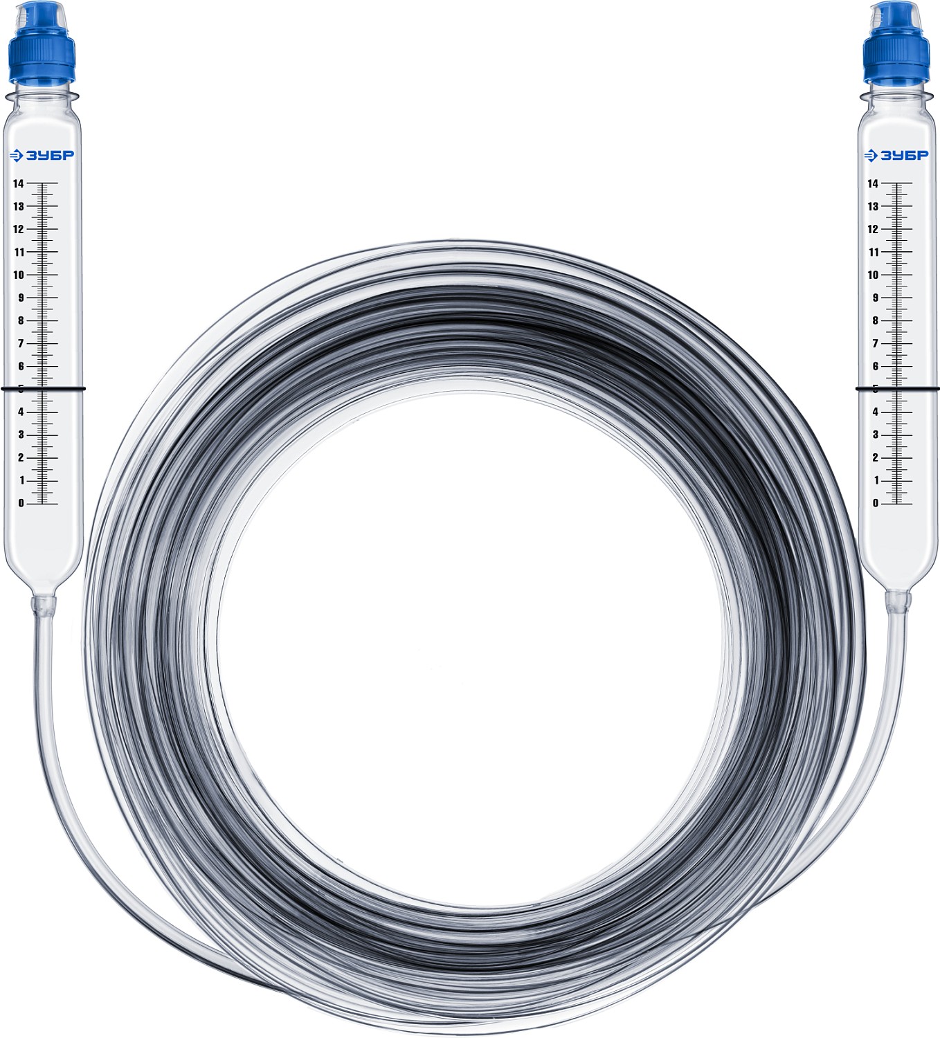 ЗУБР 20 м, Гидроуровень с усиленными измерительными колбами, Профессионал (3482-08-20)