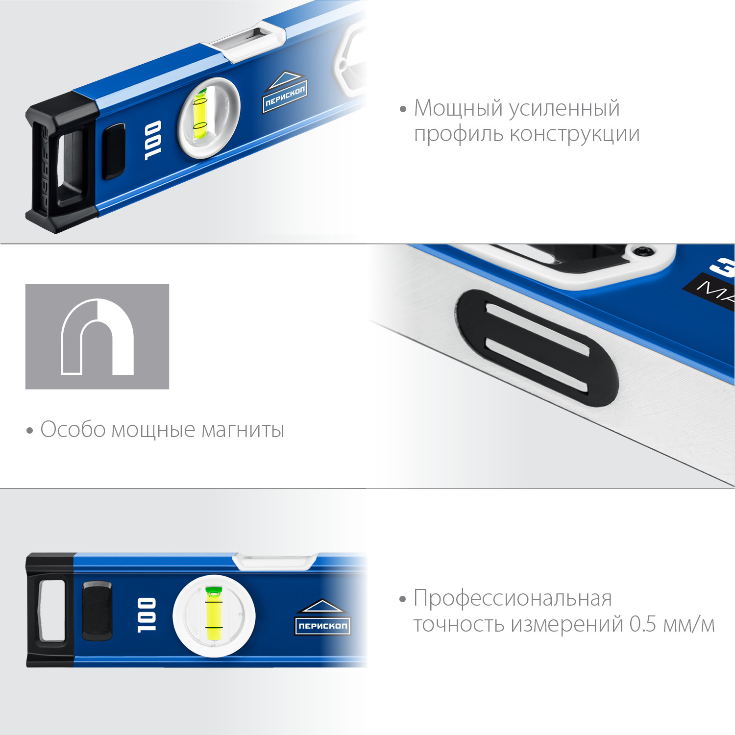 Магнитный мощный уровень с удобными рукоятками и фрезерованной базовой поверхностью