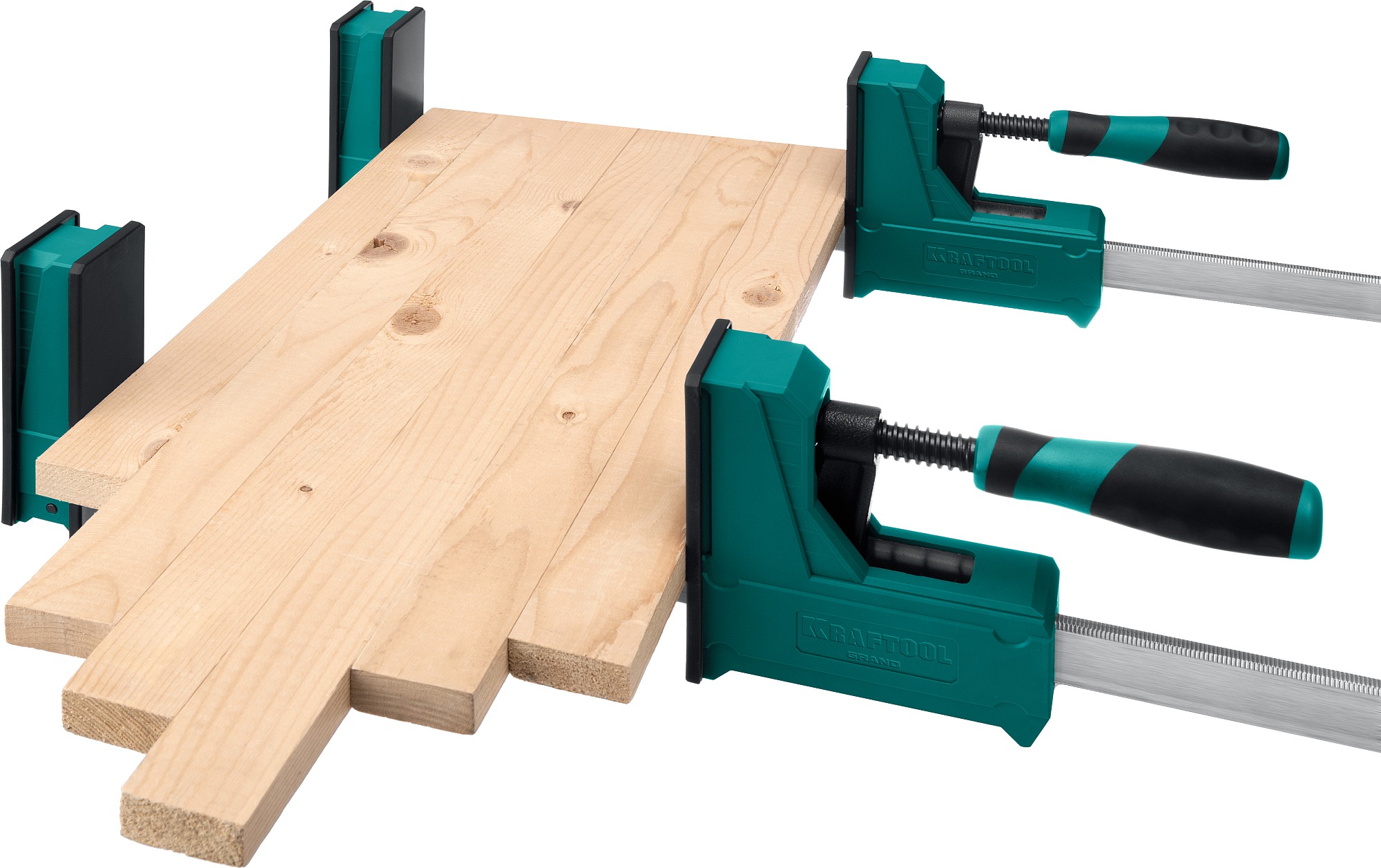 Надёжная профессиональная корпусная струбцина KRAFTOOL GRAND с постоянно параллельными губками для всевозможных столярных работ. Работа на сжатие и на распор. Бережная фиксация заготовок благодаря мягким переставным накладкам. Высокая сила сжатия. Силовые элементы из закаленной стали и высокопрочного чугуна.