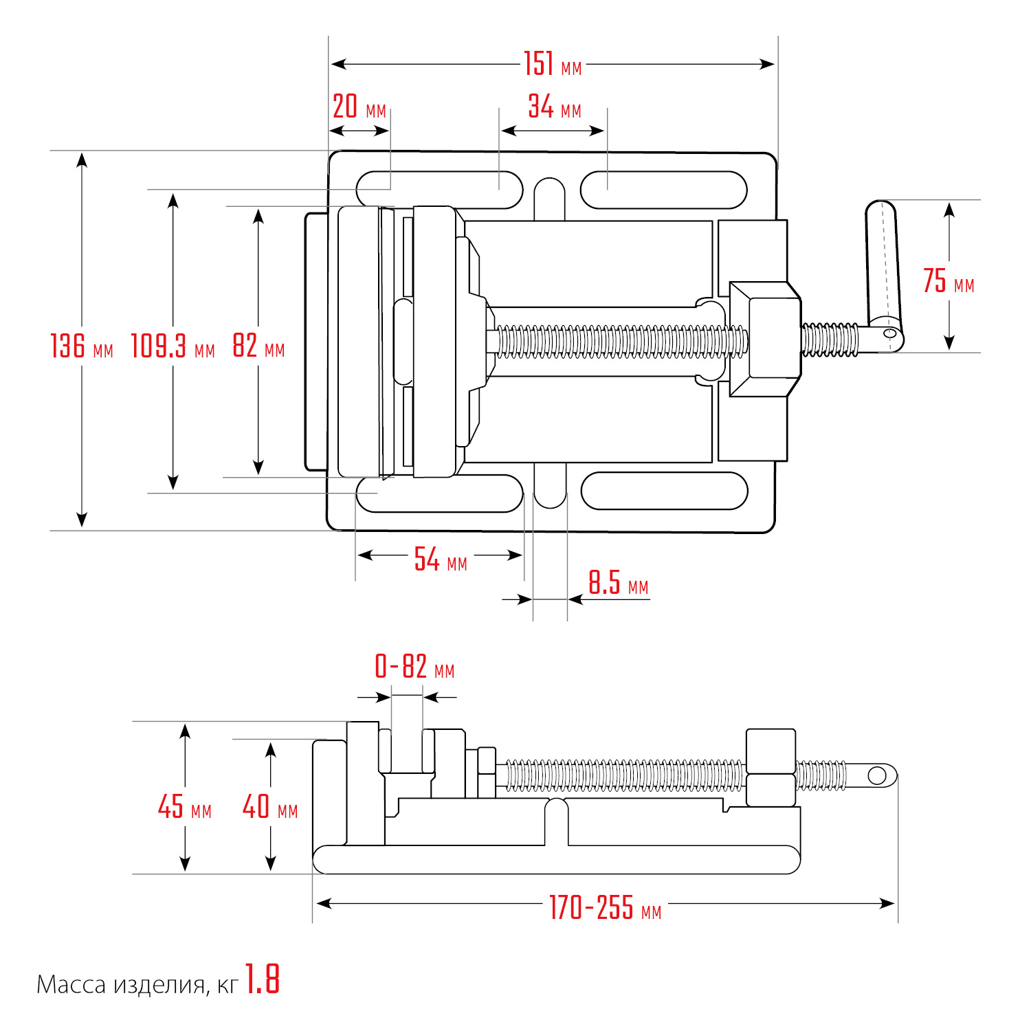 • Установка тисков на столе осуществляется с помощью винтов и гаек, для чего в основании предусмотрены отверстия.