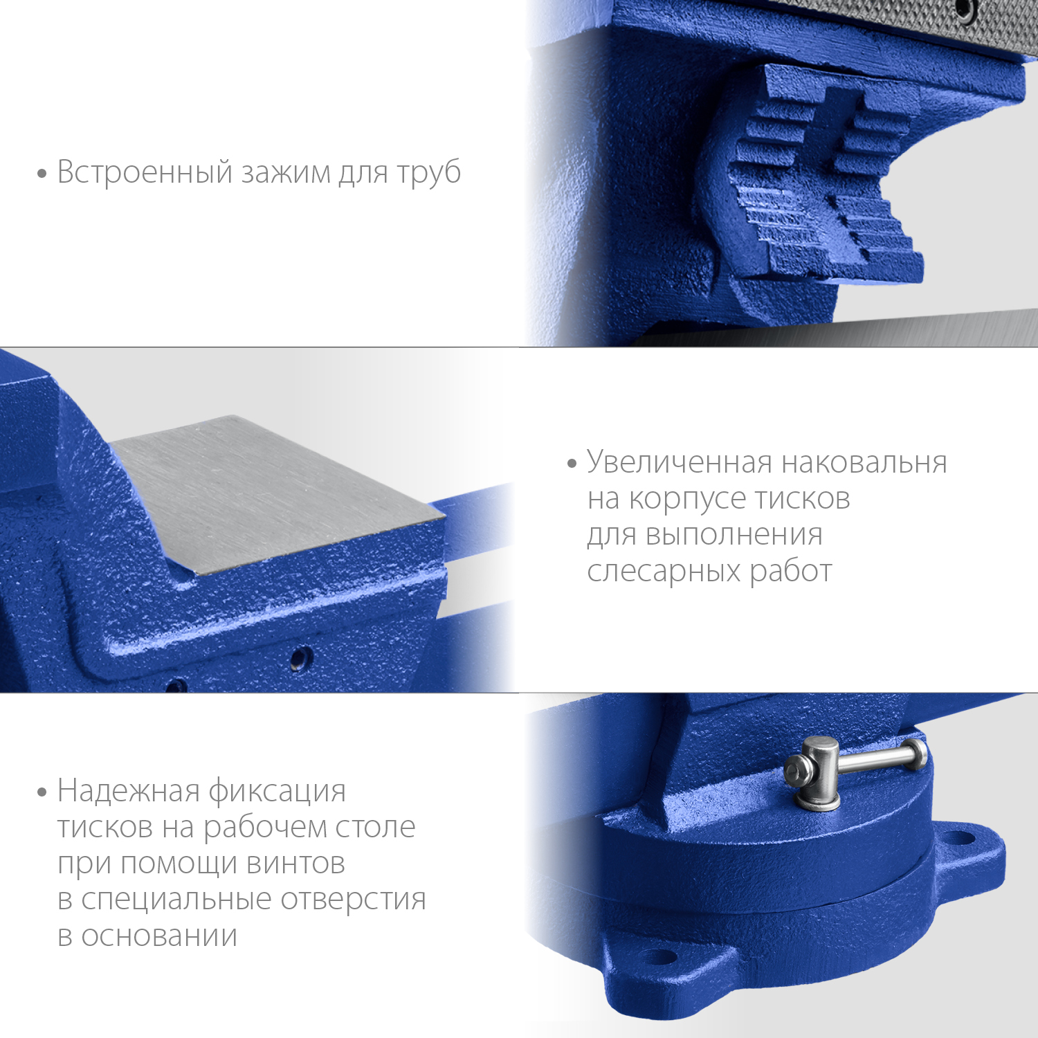- Увеличенная наковальня на корпусе тисков для выполнения слесарных работ