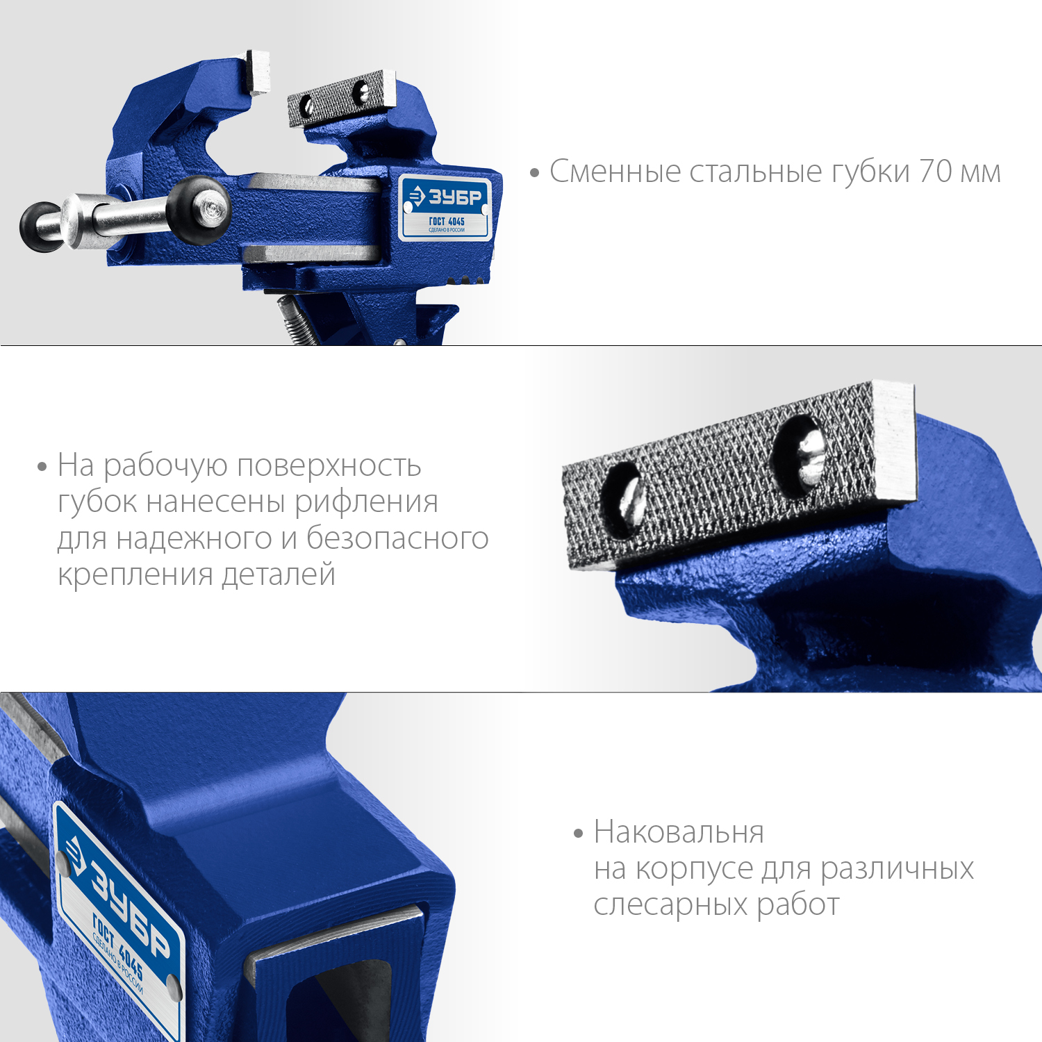 Тиски слесарные ЗУБР изготовлены из высокопрочного чугуна с шаровидным графитом, соответствуют самым высоким техническим требованиям. Компактные, снабжены струбциной для быстрой и надежной фиксации на рабочем месте. Обеспечивают длительную и качественную работу.