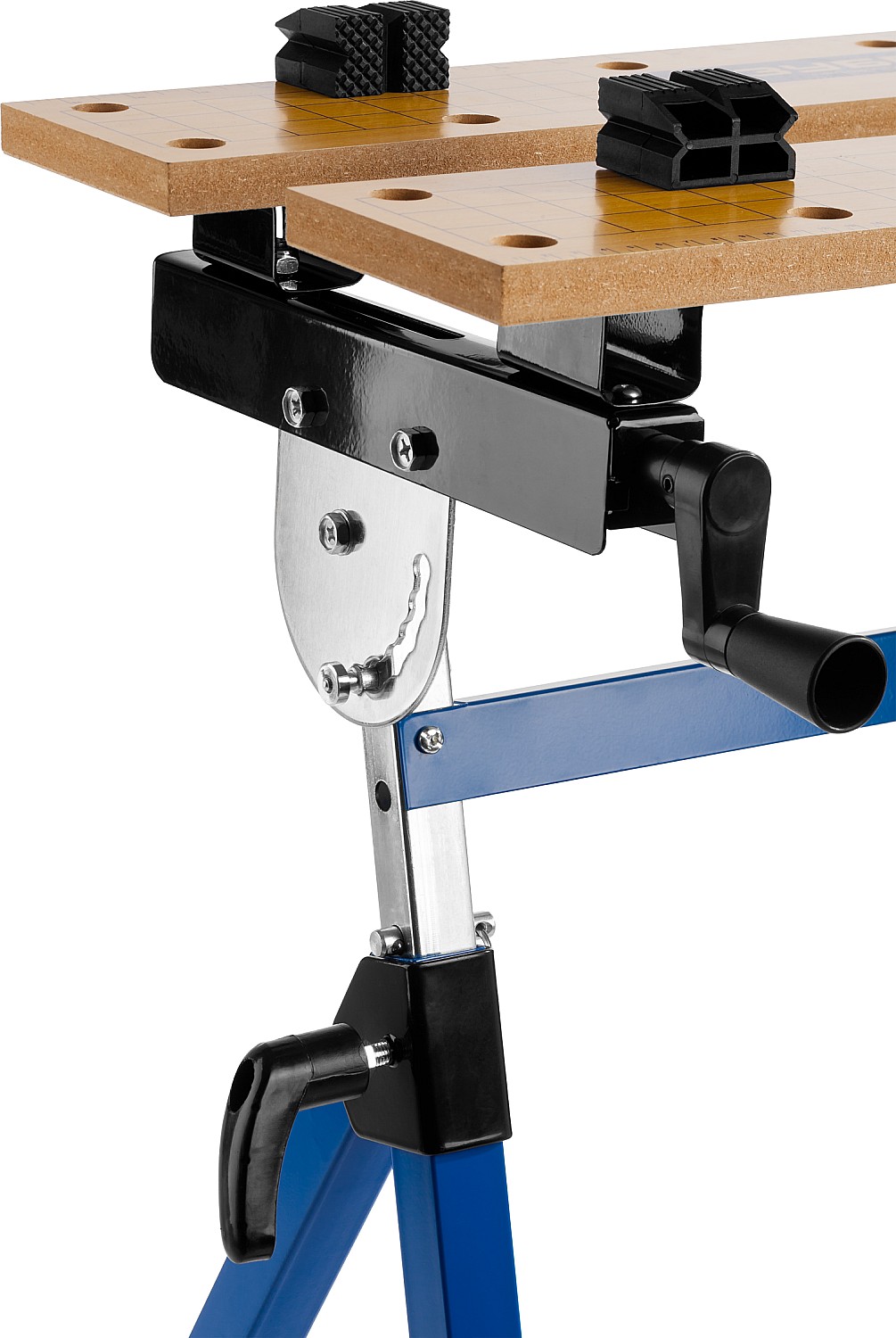 Незаменимый помощник в мастерской, в гараже и в домашних условиях. Предназначен для проведения столярных работ. Благодаря складному каркасу удобен в хранении и транспортировке. Столешница состоит из статической и подвижной части, фиксируемой двумя вращающимися ручками. Для удобства в работе столешница оснащена отверстиями и фиксаторами заготовок любой формы.