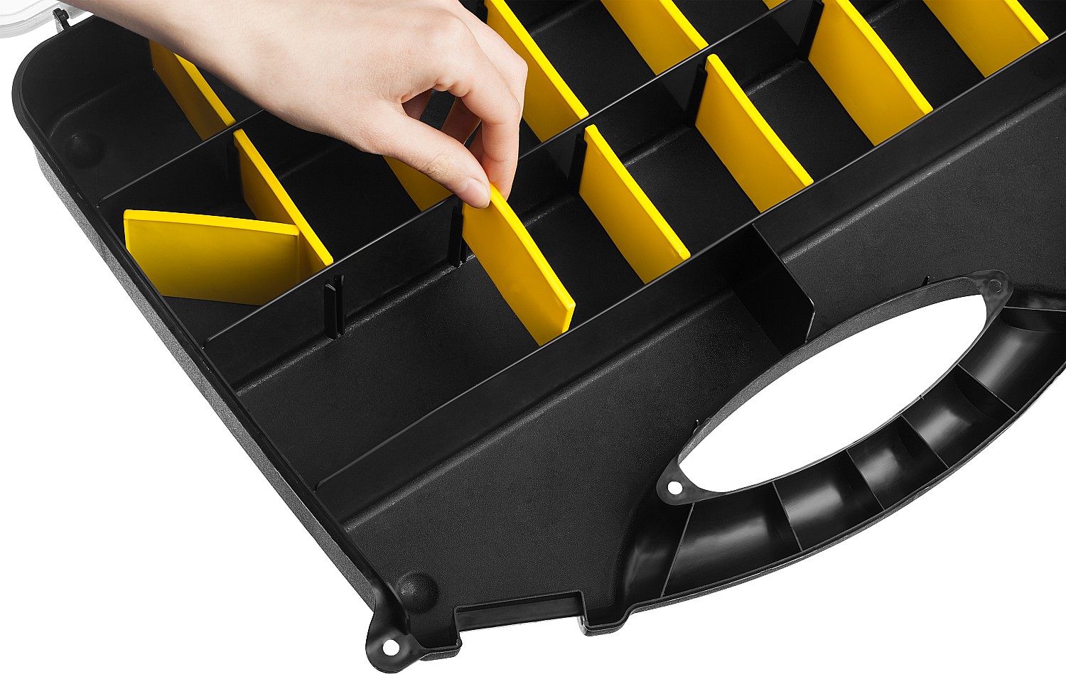 Большое количество ячеек и возможность их регулирования по ширине позволяет организовать удобное хранение инструментов и принадлежностей
