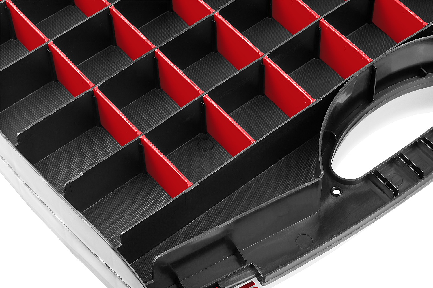 Большое количество ячеек и возможность их регулирования по ширине позволяет организовать удобное хранение инструментов и принадлежностей
