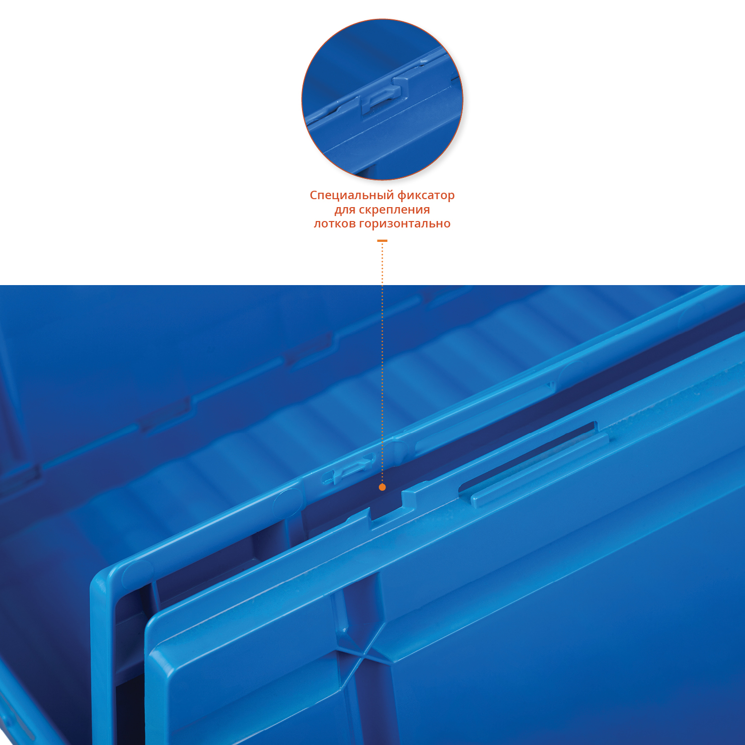 - Лотки одного размера можно ставить друг на друга. Также имеется фиксатор, позволяющий скреплять лотки боковыми сторонами