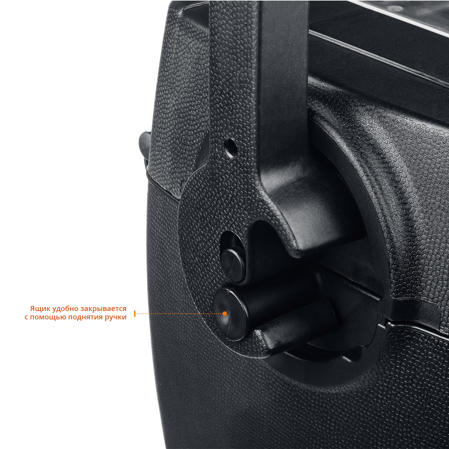 Прочный металлический ящик позволяет организвовать удобное и надежное хранение большого количества инструментов. Широкая алюминиевая рукоятка помогает сместить центр тяжести ящика если это необходимо