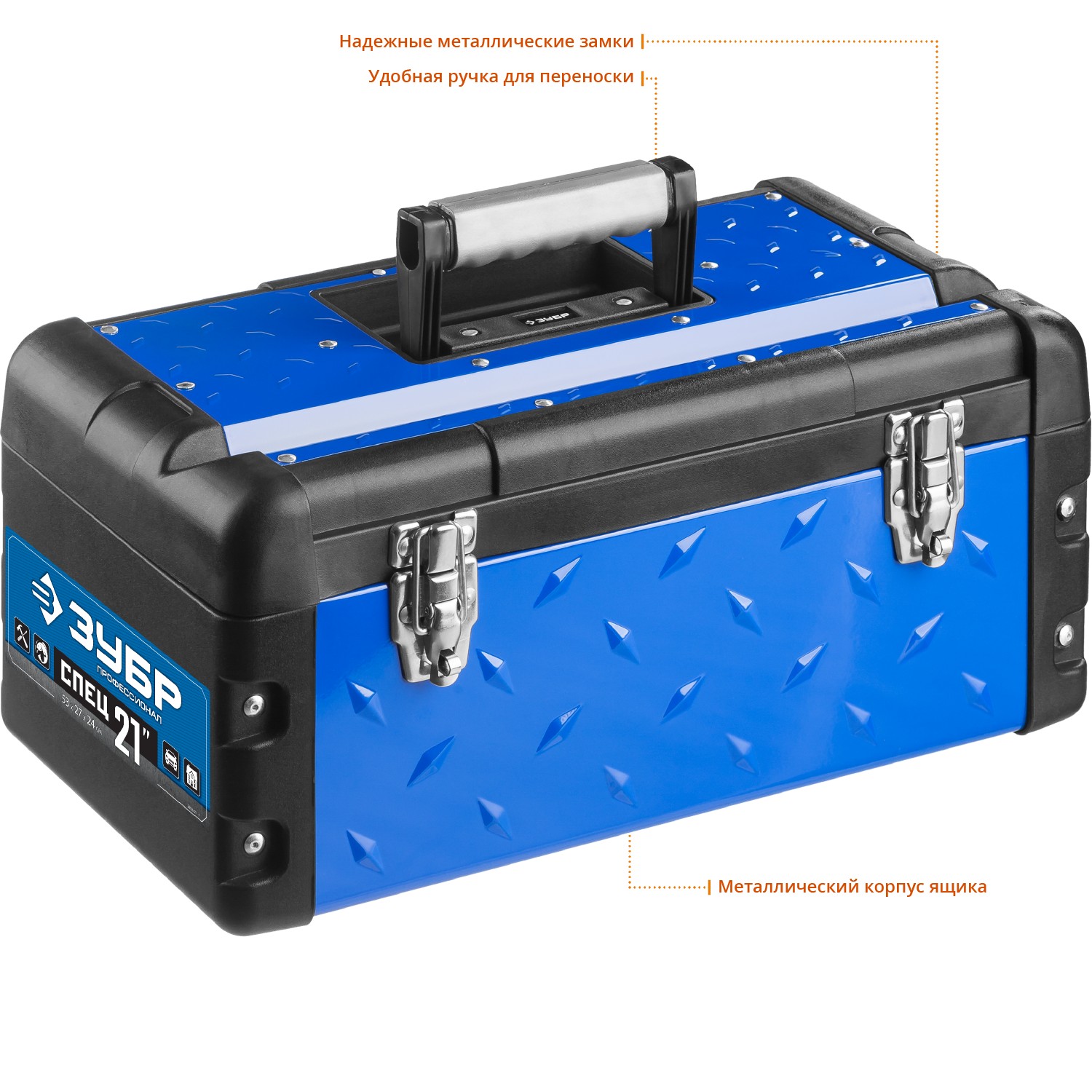 ЗУБР СПЕЦ-21, 530 x 270 x 240 мм, (21″), Металлический ящик для инструментов, Профессионал (38155-21)