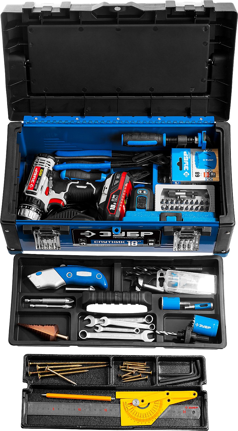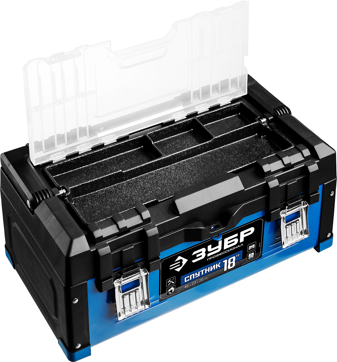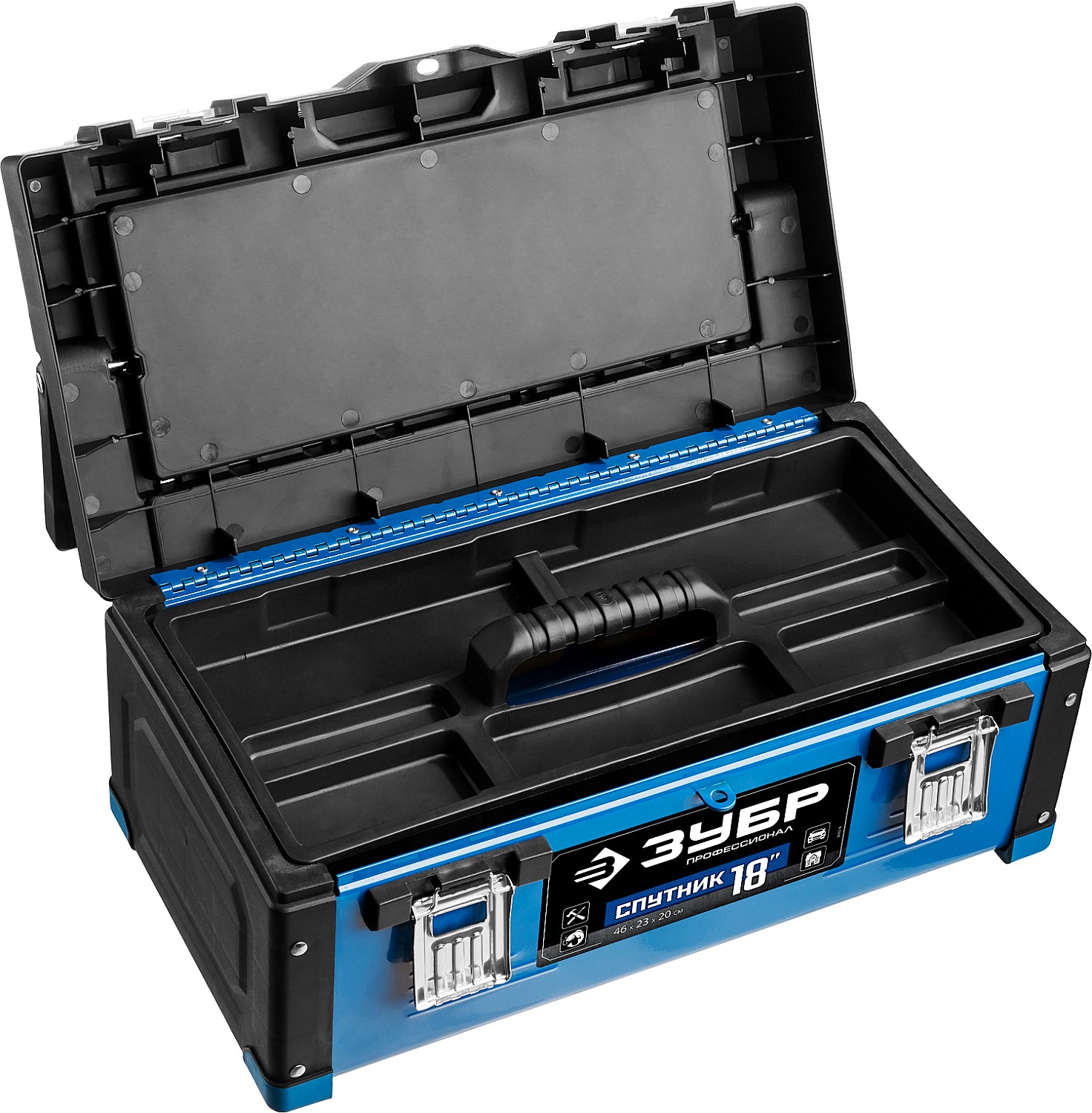 Прочный металлический ящик позволяет организовать удобное и надежное хранение большого количества инструментов. Широкая алюминиевая рукоятка помогает сместить центр тяжести ящика, если это необходимо